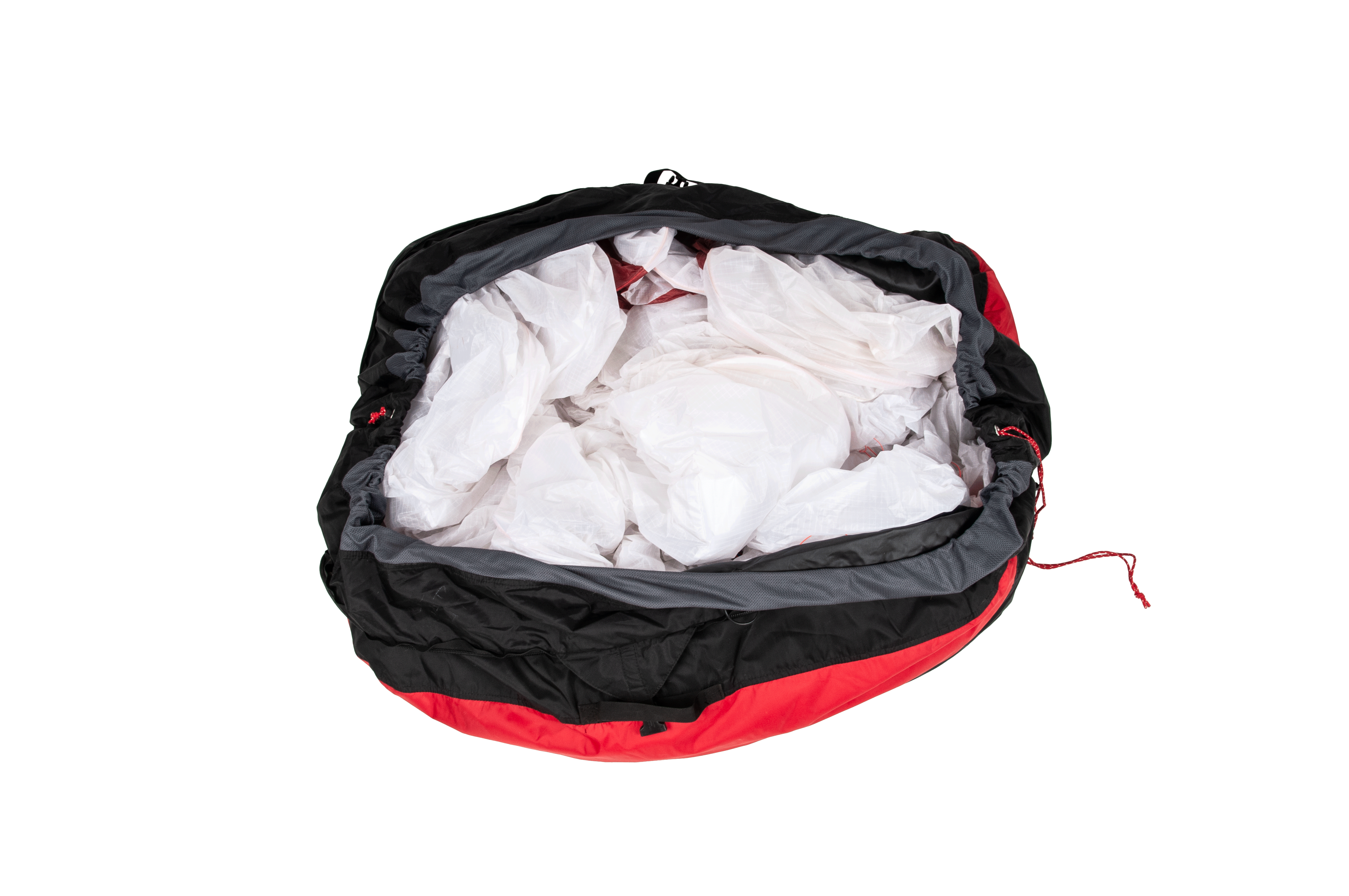 Innovative zip system for fast packing and durable, integrated rucksack for easy carrying.
