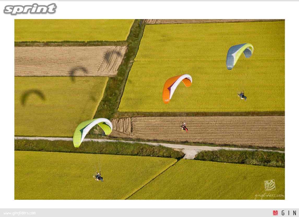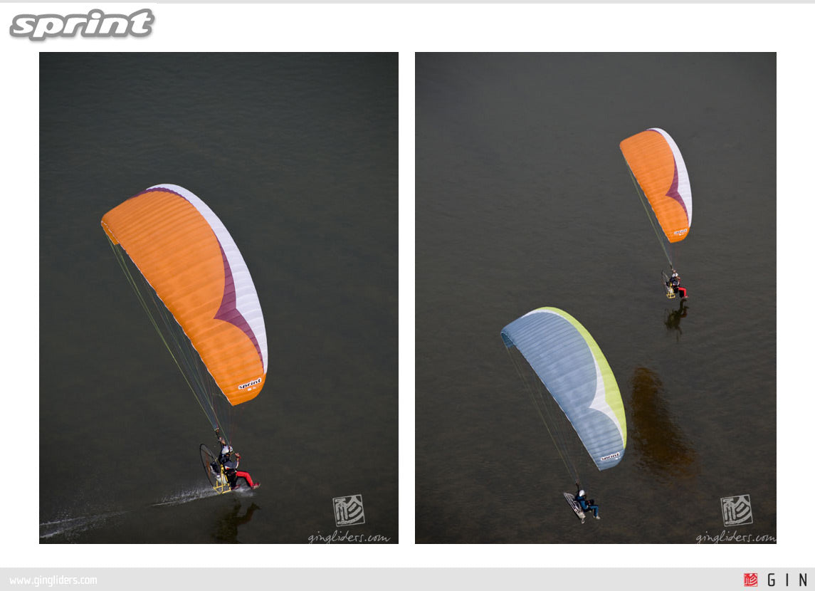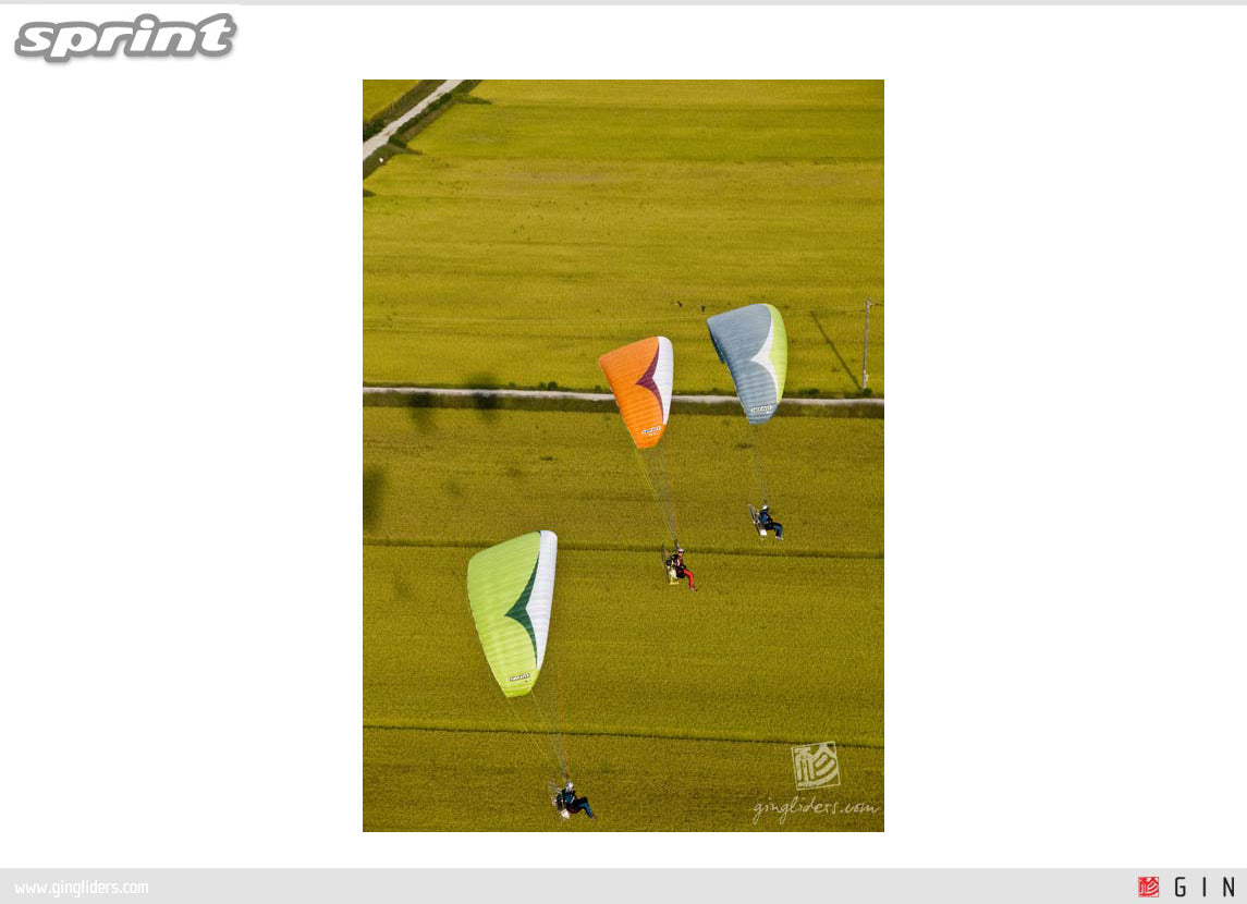 *Whereas most manufacturers don't bother getting their wings freeflight certified with paramotor risers, Gin did with the Sprint, to satisfy German legal requirements (wings must be certified in Germany). Therefore the Sprint is freeeflight certified EN D with paramotor risers.