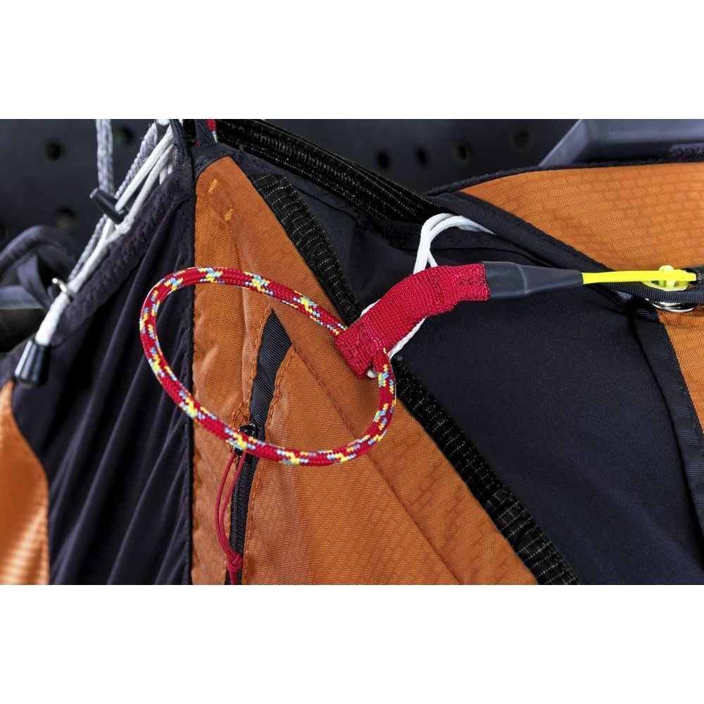 The frontal placement of the emergency parachute, integrated in the Kocon, allows for easy extraction even under heavy acceleration. The handle is positioned to be seized easily and instinctively.