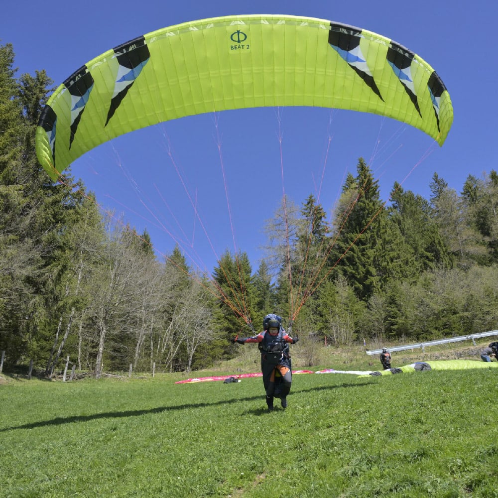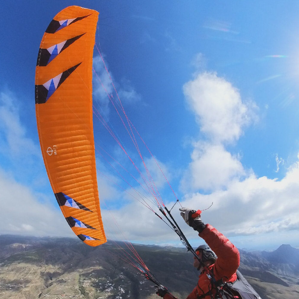 At the request of many pilots, the BEAT 2 has only robust, sheathed lines on the brakes and stabilo, which stand out clearly from the ground in their orange.