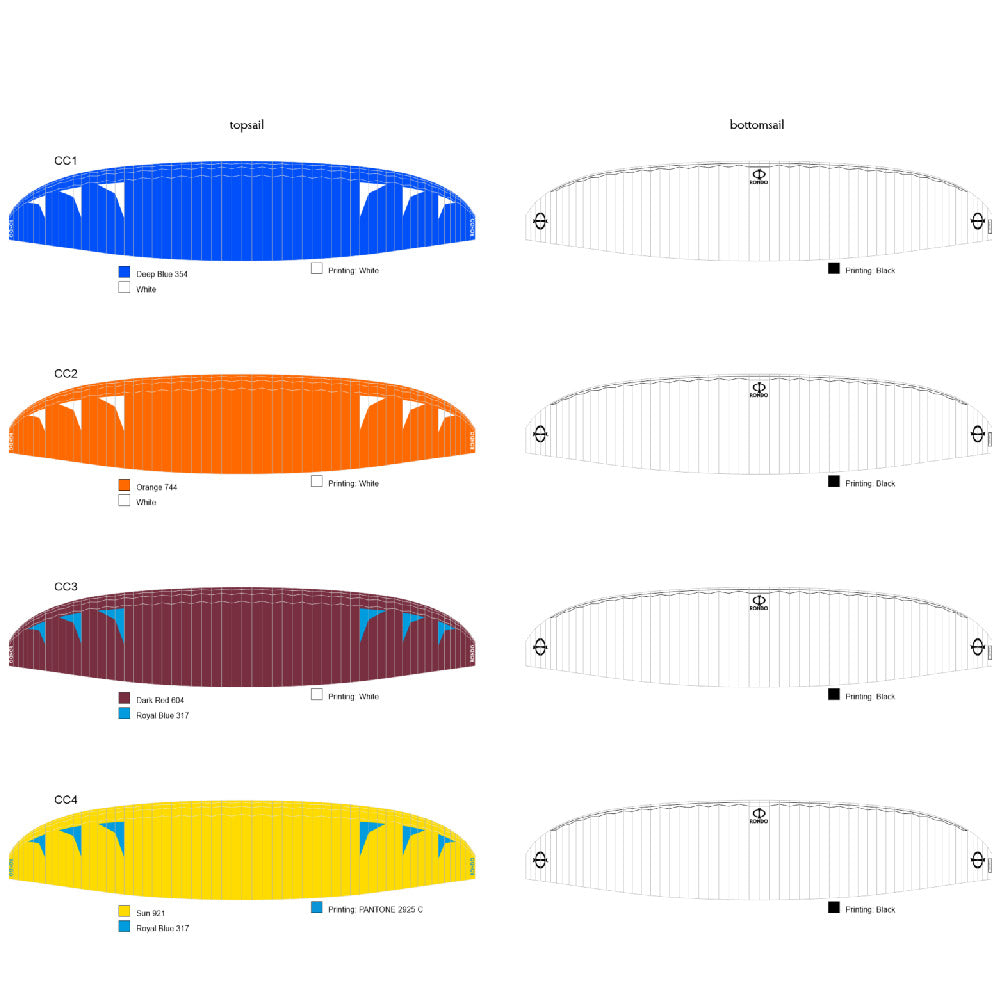 Standard colours: CC01 (Deep Blue, White), CC02 (Orange, White), CC03 (Dark Red, Royal Blue), CC04 (Sun, Royal Blue).