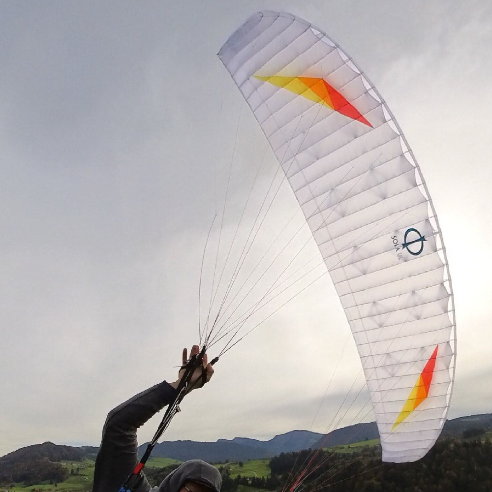 The SOLA UL is delivered with the new developped super light Dyneema riser R13. It has around 100g per pair incl brake handles!
