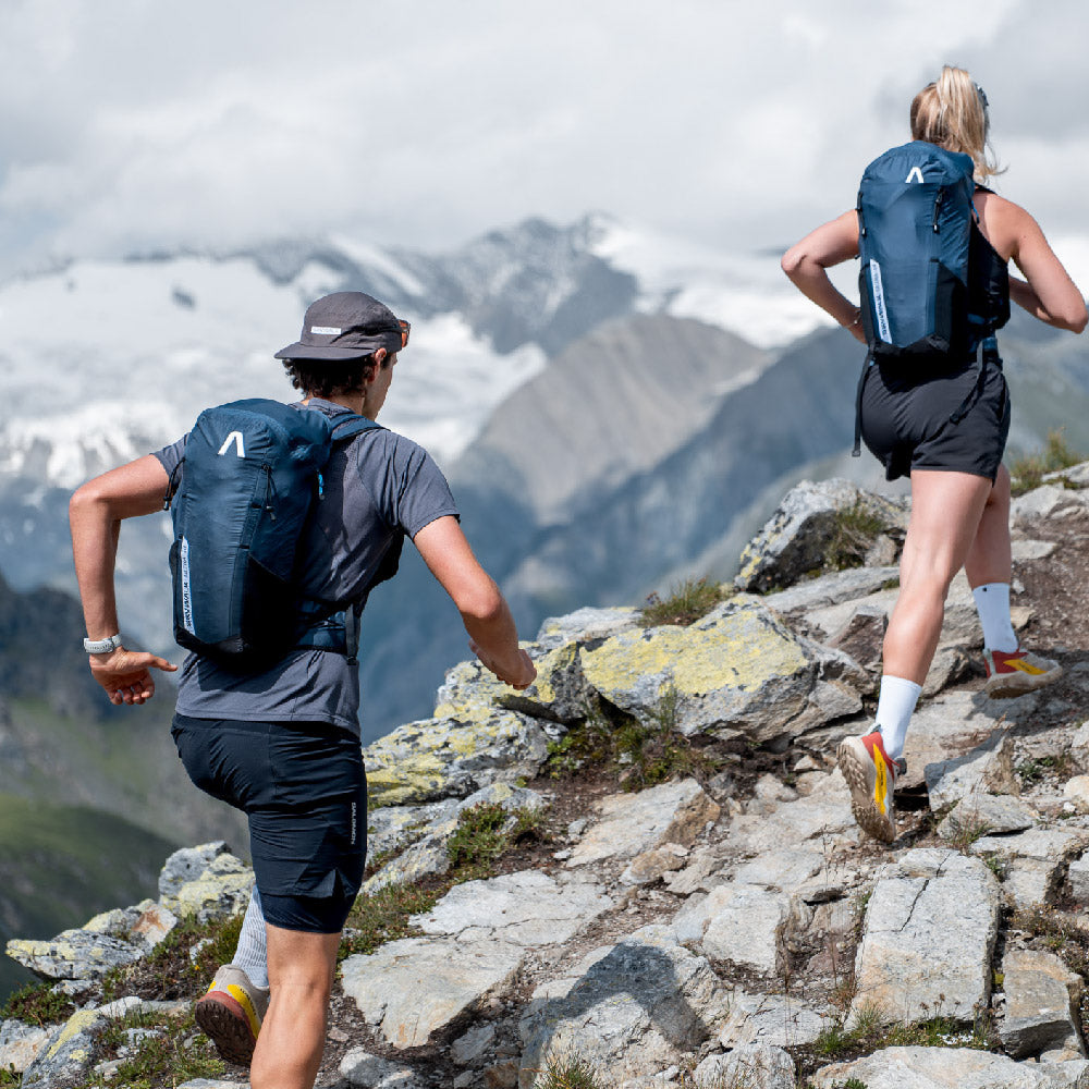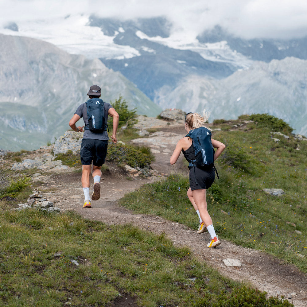 The wide shoulder straps enable ideal load distribution and adapt anatomically to the body structure. The built-in mesh material on the shoulder straps, the back section and on the hip belt is breathable. The hip belt prevents bouncing up and down while running.