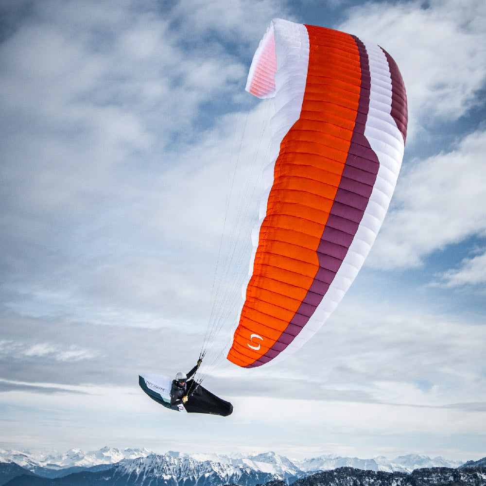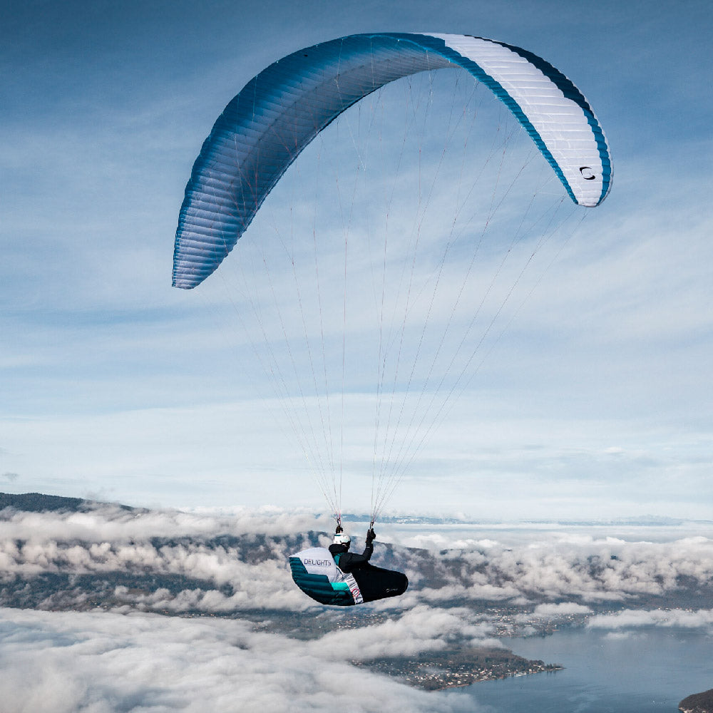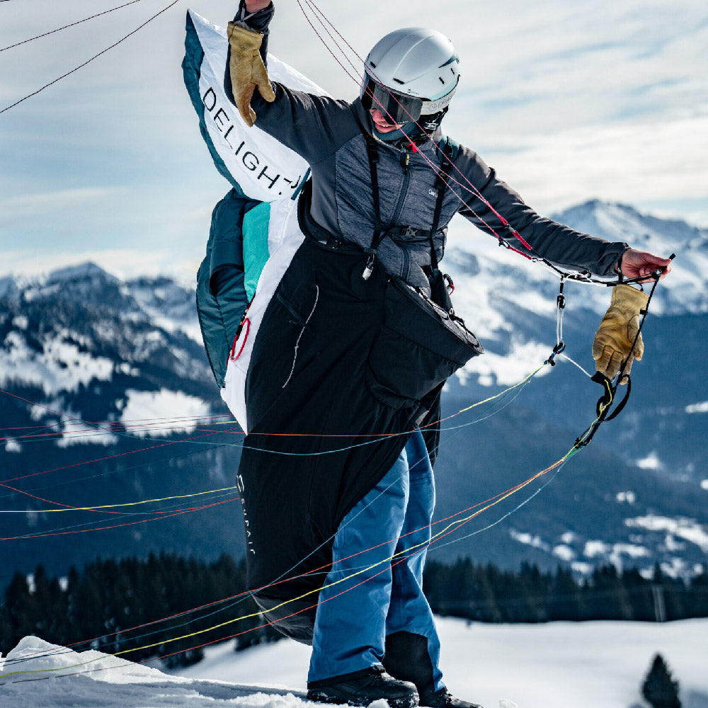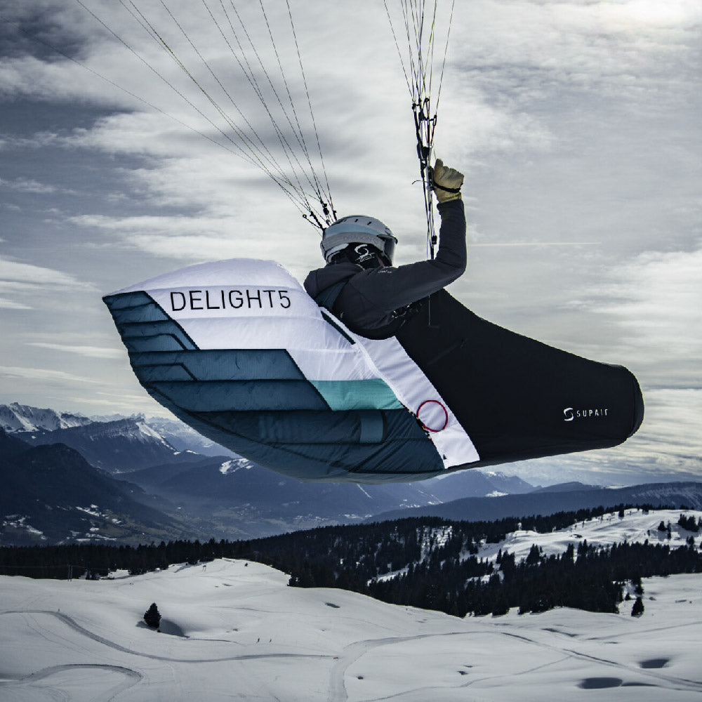 This fifth generation achieves the remarkable feat of shedding 300 g (about 10% compared to the DELIGHT 4) without compromising on ergonomics or durability. Comfort is ensured by an enveloping cocoon and legstraps provide precise support, ideal for long hours of flight. The upgrade to a higher-end model is also reflected in more sophisticated accessories: a speedbag cockpit and speedbag for simplified handling, as well as an optimized parachute pocket. These details, combined with meticulous finishes, make it a tool that is as pleasant to use on a daily basis as it is aesthetically pleasing.